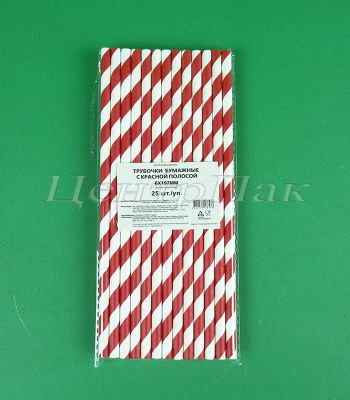 Трубочки бумажные 6*197 мм с красной полосой (25шт./уп., 400 уп./кор.) (10000)