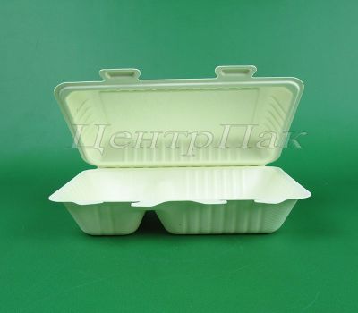 Ланч-бокс на 1000мл 2-секц. 252х166х64мм Белый биоразлагаемый 30шт/уп (150)