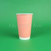 Стакан бумажный 450 (530) мл двухслойный розовый 20х25 (500) ФК