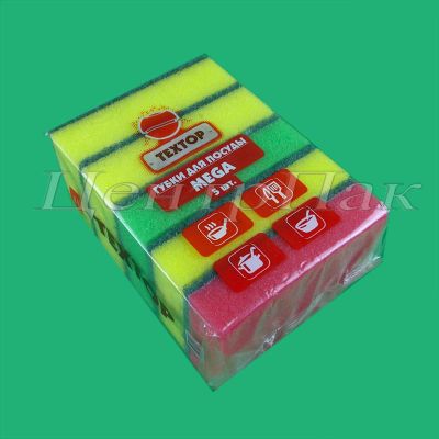 Губка для посуды MEGA TEXTOP 11,5х7,5х3,2см (5шт./упак.) (40) ТТ664