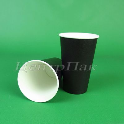 Стакан бумажный 450 (530) мл однослойный черный 20х40 (800) ФК