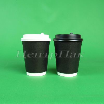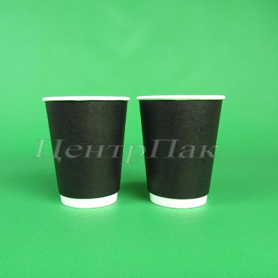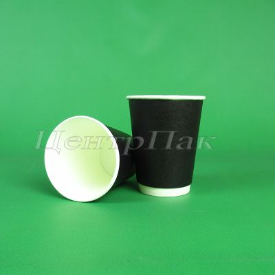 Стакан бумажный 350 (430) мл двухслойный черный 20х30 (600) ФК