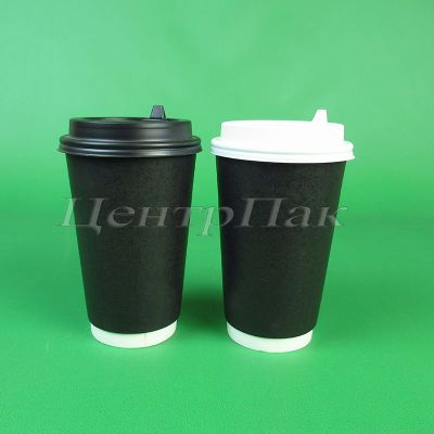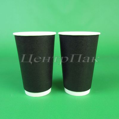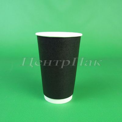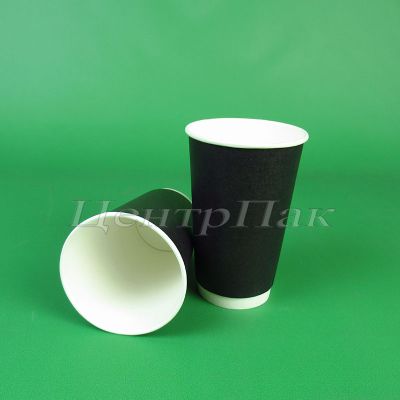 Стакан бумажный 450 (530) мл двухслойный черный 20х25 (500) ФК
