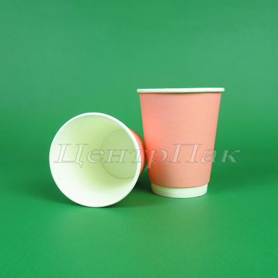 Стакан бумажный 350 (430) мл двухслойный розовый 20х30 (600) ФК