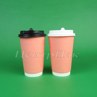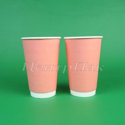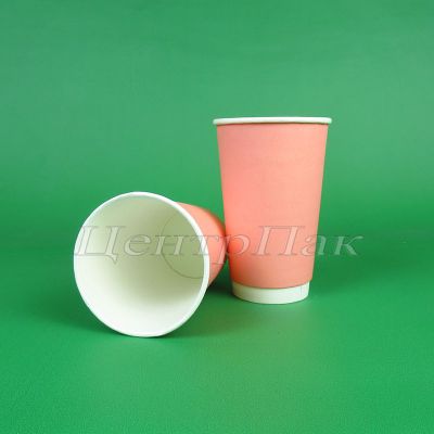 Стакан бумажный 450 (530) мл двухслойный розовый 20х25 (500) ФК