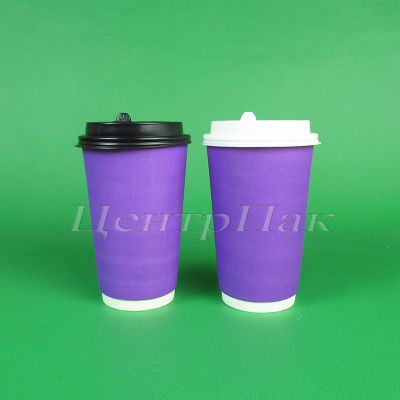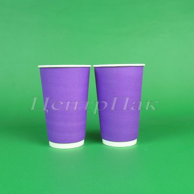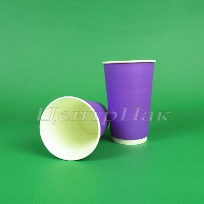 Стакан бумажный 450 (530) мл двухслойный фиолетовый 20х25 (500) ФК