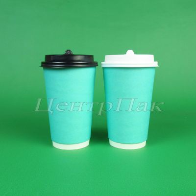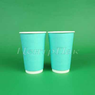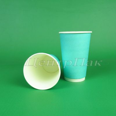 Стакан бумажный 450 (530) мл двухслойный бирюзовый 20х25 (500) ФК