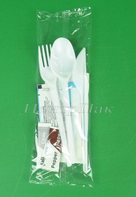 Набор для пикника 8/1 эконом (ст.ложка, вилка, нож, салф вл и сух, соль, перец, зубочист) (300)