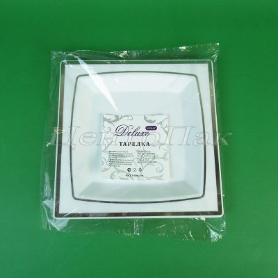 Тарелка квадрат. 205*205 мм белая с серебряной каемкой 12х10 (120)