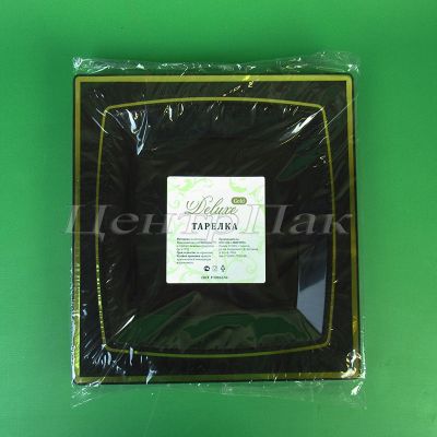 Тарелка квадрат. 240*240 мм черная с золотой каемкой 12х10 (120)