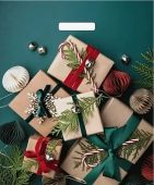 Пакет с пробивной ручкой ПВД 38х45+3 Подарки на зеленом(НГ) 60мкм 20х25(500)