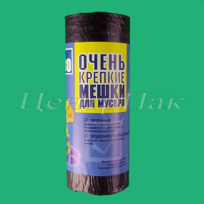 Пакет для мусора 50х60 в рул. 20шт/рул (50) 30л, Очень крепкие, КР