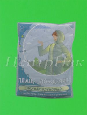 Дождевик ПНД 70х118 зеленый с застеж., капюш., рукавами (100)
