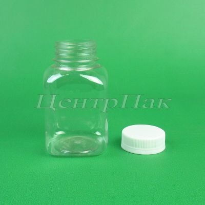 Бутылка ПЭТ 0,2л квадр. прозр с крышкой, широкое горло (200)