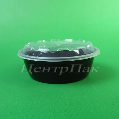 Контейнер круглый с крышкой 530мл ПП черный d - 152 мм, h - 48 мм (150) ВЗЛП 1264Ч