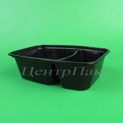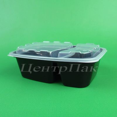 Ланч-бокс ПП 2х-секц. 1000мл черный с прозрачной крышкой 212*148*70 (150) ВЗЛП 1268