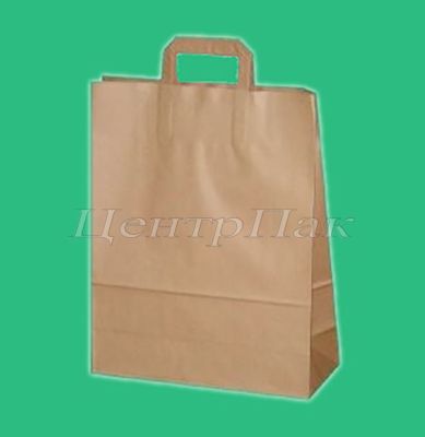 Пакет бумажный 320х200х370 с плоскими ручками крафт70 (250)